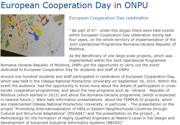 Presentation of MEDIS during “European Cooperation Day”, of September 18th 2015. http://opu.ua/eng/news/general/976