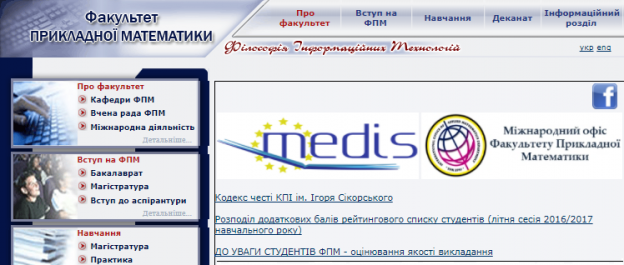 MEDIS project’s banner at the home page of the official web-portal of the Faculty of Applied Mathematics (FAM) of the National Technical University of Ukraine “Kyiv Polytechnic Institute” (NTUU “KPI”) http://fpm.kpi.ua