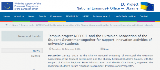 Medis on the official web page of NCP ERASMUS+ Ukraine http://erasmusplus.org.ua/en/news/1212-tempus-project-nefesie-and-the-ukrainian-association-of-the-student-governmenttogether-for-support-innovation-activities-of-university-students.html