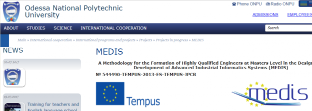 Medis on the official website of ONPU http://opu.ua/eng/inter_coop/internationalprograms/projects/project3/medis
